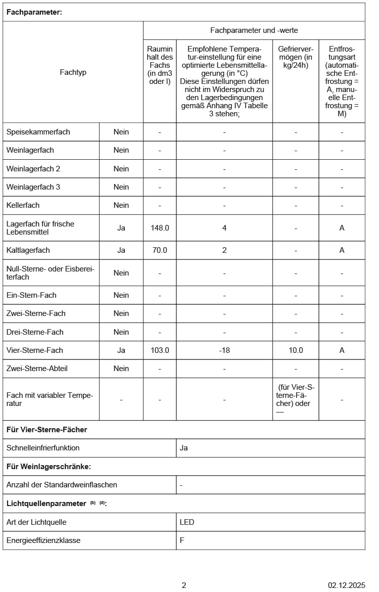 - Nutzinhalt Tiefkühlfächer: 103 l