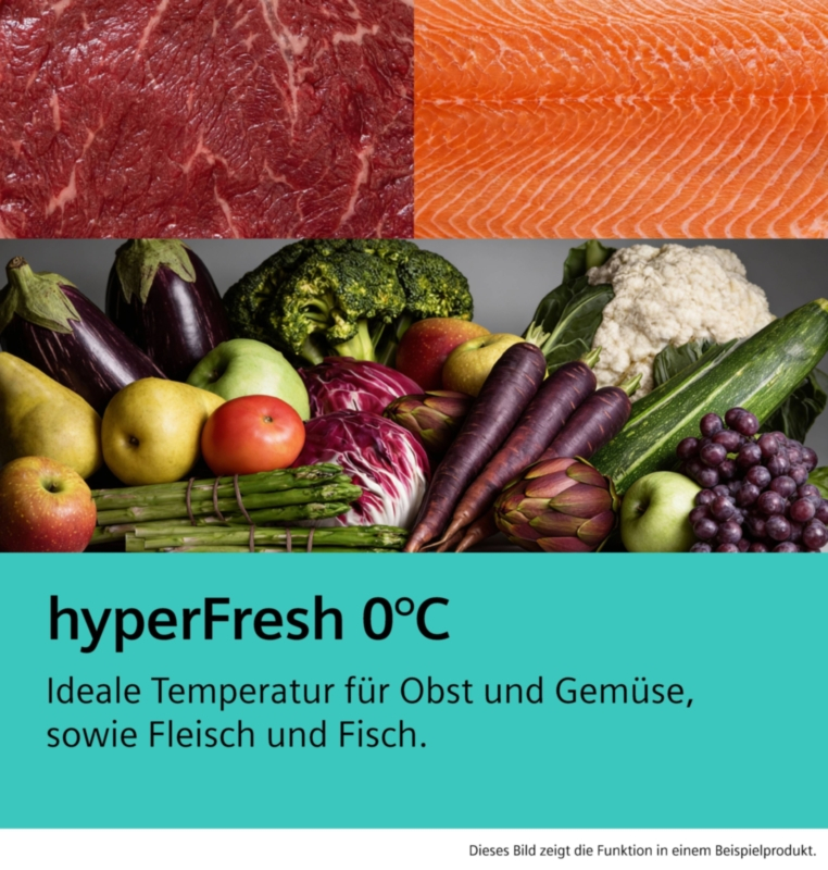 - hyperFresh 0°C: Temperaturen etwas über 0°C sorgen dafür, dass deine Lebensmittel länger frisch bleiben.