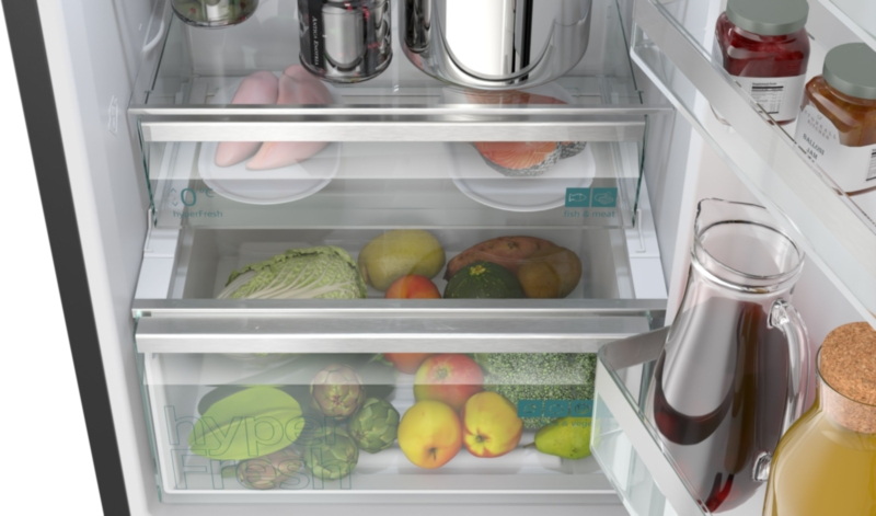 - hyperFresh <0°C>: mehr Platz für Obst und Gemüse. Und eine besonders kalte Umgebung für Fisch und Fleisch.