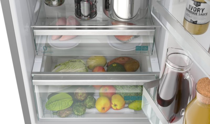 - hyperFresh <0°C>: mehr Platz für Obst und Gemüse. Und eine besonders kalte Umgebung für Fisch und Fleisch.