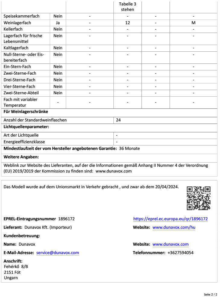 - Kapazität Flaschen: 24 (0,75l Bordeaux)