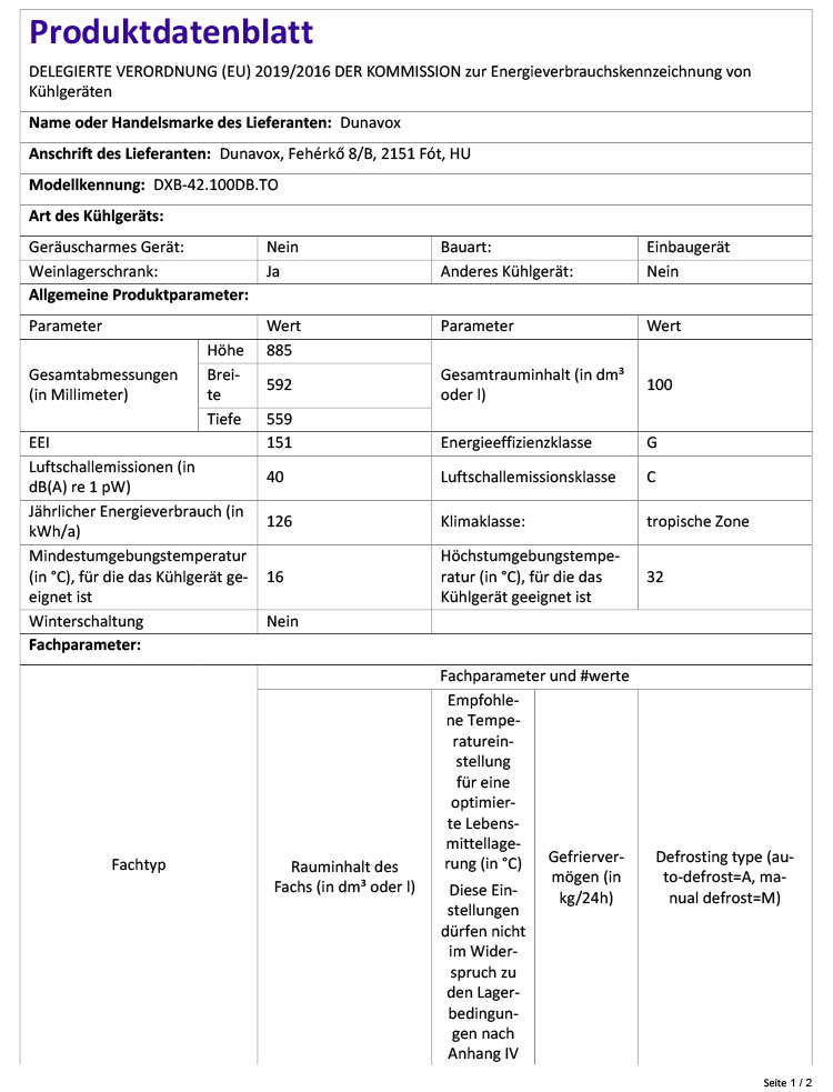 - Jahresverbrauch gilt bei Voraussetzung einer Umgebungstemperatur von 25°C und einer Betriebstemperatur von ≥4°C.