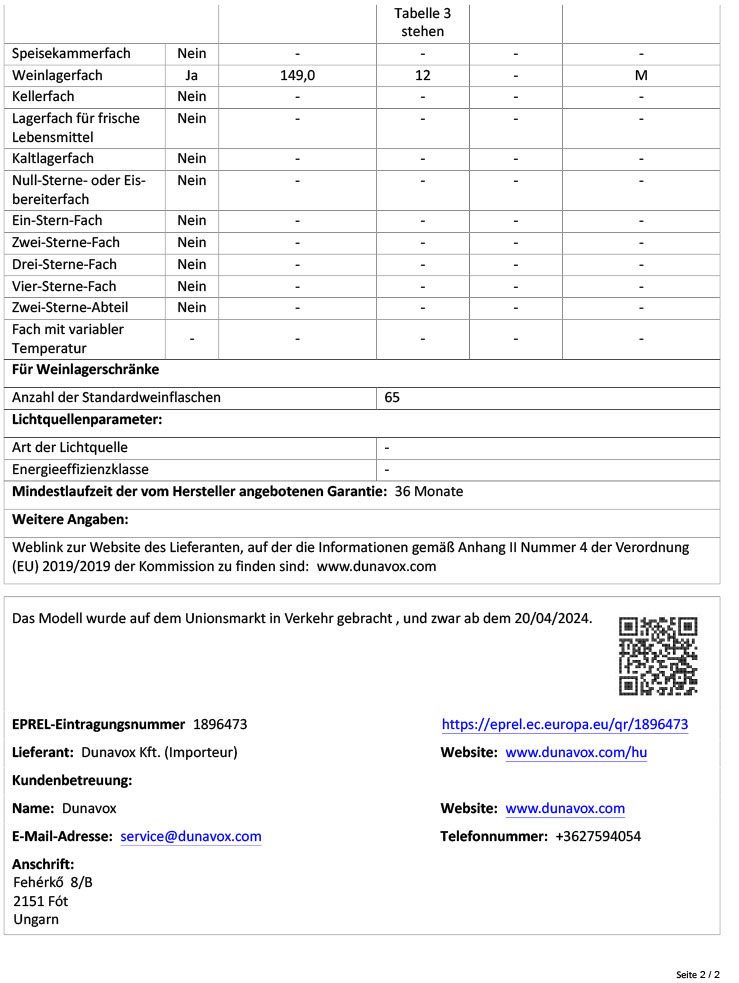 - Kapazität Flaschen: 65 (0,75l Bordeaux)