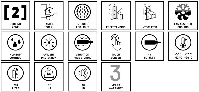 - Kapazität Flaschen: 94 (0,75l Bordeaux)