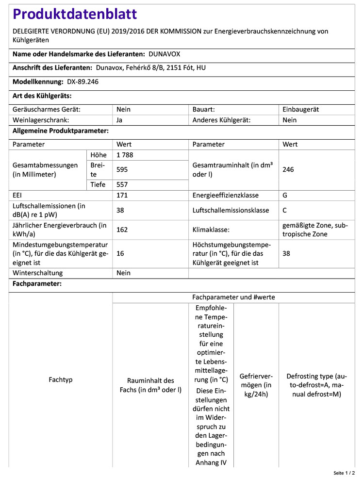 - Jahresverbrauch gilt bei Voraussetzung einer Umgebungstemperatur von 25°C und einer Betriebstemperatur von ≥4°C.