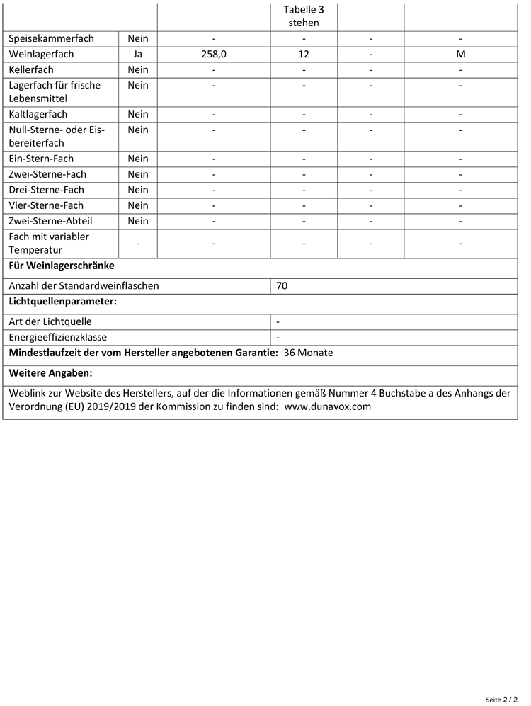 - Kapazität Flaschen: 70 (0,75l Bordeaux)