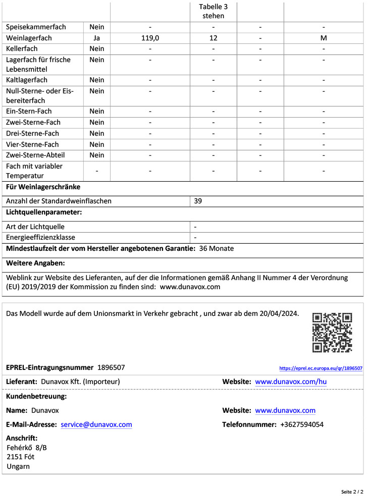 - Kapazität Flaschen: 39 (0,75l Bordeaux)
