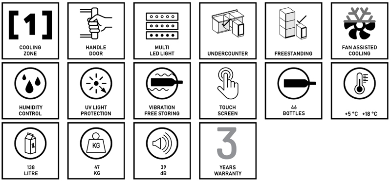 - Kapazität Flaschen: 46 (0,75l Bordeaux)