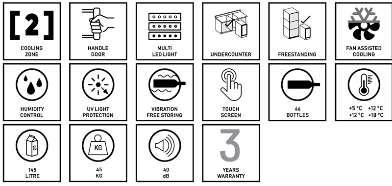 - Kapazität Flaschen: 46 (0,75l Bordeaux)