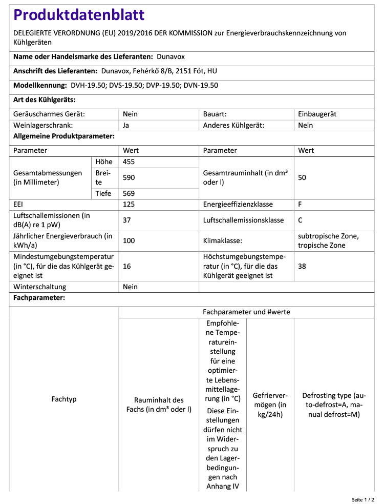 - Jahresverbrauch gilt bei Voraussetzung einer Umgebungstemperatur von 25°C und einer Betriebstemperatur von ≥4°C.