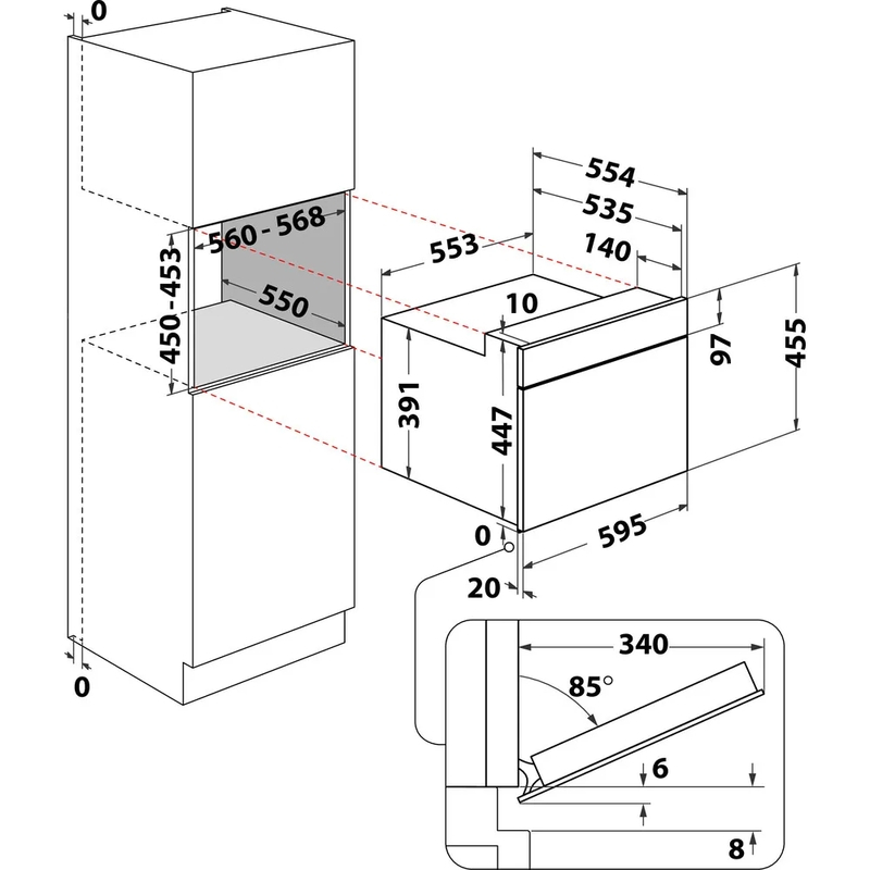 - Nischenmaße (HxBxT): 450x556x550 mm