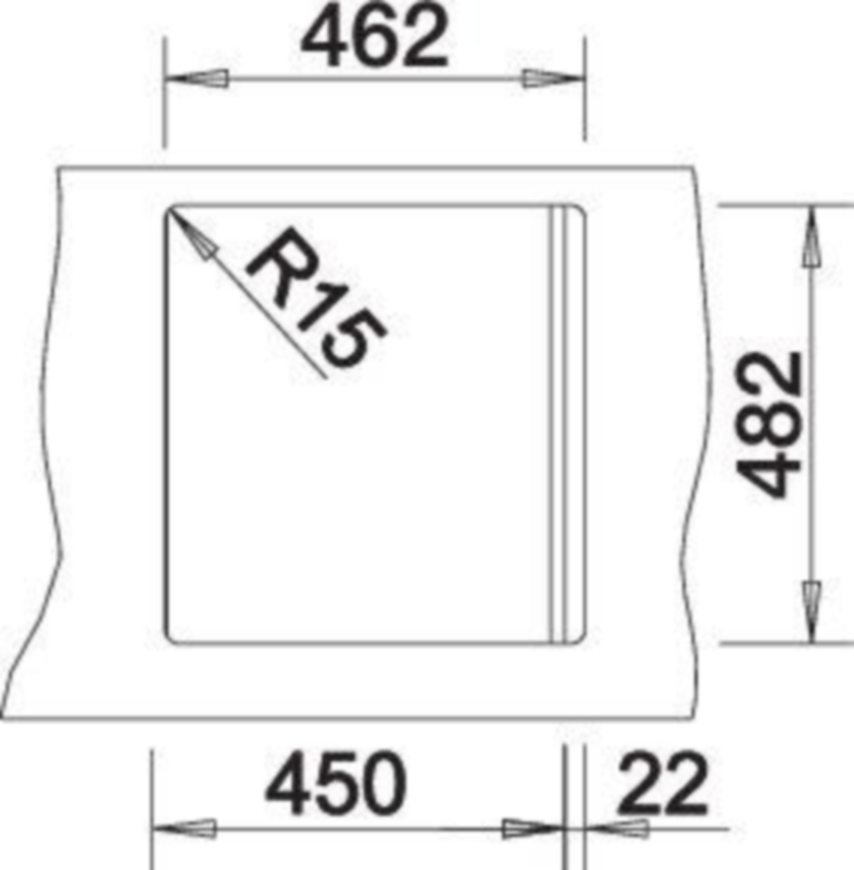 - Abmessungen 480 x 500 mm, Becken 420 x 345 mm