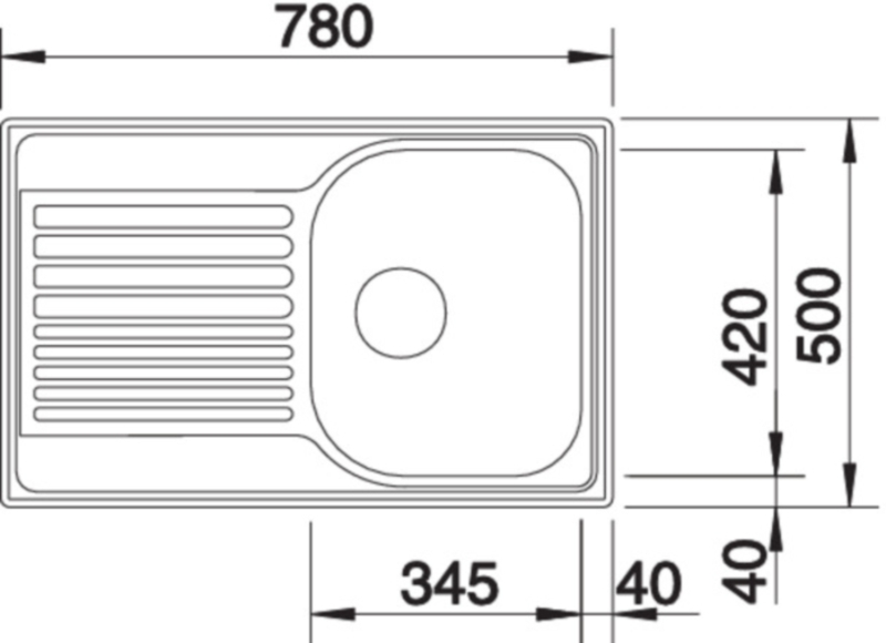 - Abmessungen 780 x 500 mm, Becken 450 x 482 mm