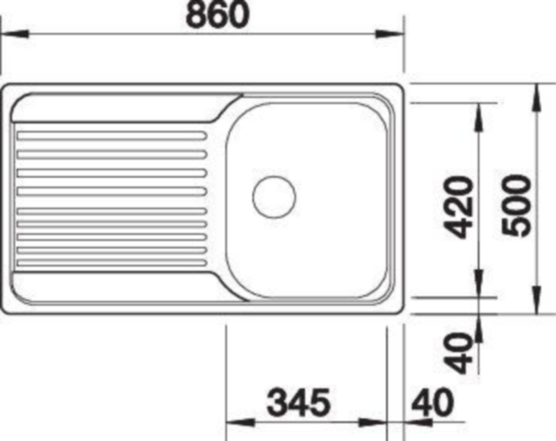 - Abmessungen 780 x 500 mm, Becken 450 x 482 mm