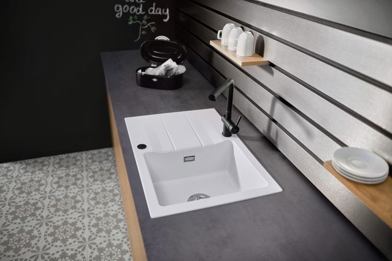 - diese Spüle ist nur als Einbau- bzw. Auflage-Spüle einbaubar; ein flächenbündiger Einbau oder der Einsatz als Unterbau-Spüle ist nicht möglich! Es gibt von diesem Modell jedoch eine Schwester-Variante, die dafür vorgesehen ist (am Ende "F" für die flächenbündig einzubauende Variante)