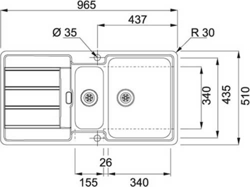 reversibel heißt: die Spüle läßt sich sowohl links als auch rechts herum einbauen; d. h. Sie können selbst entscheiden, ob Sie das Abtropfbecken auf der rechten oder auf der linken Seite haben möchten.