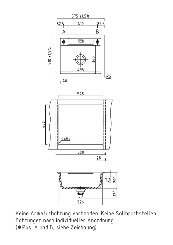 - Der Auslieferungszustand der Spüle beinhaltet eine Lochbohrung für die Armatur. Die zusätzliche(n) Lochbohrung(en) sind verschlossen und müssen werksseitig vom Hersteller vorgenommen werden, wird dafür 12,-- Euro pro Spüle berechnet