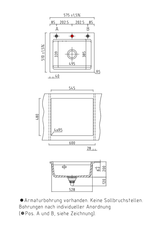 - Der Auslieferungszustand der Spüle beinhaltet eine Lochbohrung für die Armatur. Es sind keine Sollbruchstellen vorhanden; eine oder weitere Durchbohrung(en) kann nur im Werk des Herstellers Systemceram vorgenommen werden. Bitte geben Sie uns dafür exakt die von Ihnen gewünschte Position auf der Spüle an, gern auch anhand einer separaten Email, oder nehmen Sie diesbezüglich mit uns Kontakt auf. Bitte beachten Sie auch, daß Sie durch diese persönliche Positionierung der Lochbohrung einen für Sie individualisierten Artikel bestellen und erwerben, der nur für Sie speziell angefertigt wird. Diese Individualisierung und die damit verbundene nicht gegebene Möglichkeit eines anderweitigen Verkaufes durch uns kann zu einem Nicht-Wirksamwerden des Widerrufrechtes führen, welches individualisierte Produkte ausdrücklich ausnimmt. (Auf eine mit Produktmängeln zusammenhängende Reklamation hat dies selbstverständlich keinen Einfluß). Bitte sprechen Sie uns ggfs. hierauf an.