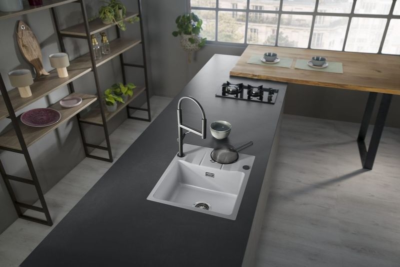 - diese Spüle ist nur als flächenbündige Spüle einbaubar (somit nur in Kombination mit Stein- oder Granitarbeitsplatten); ein Einbau als Einbau- bzw. Auflage-Spüle oder der Einsatz als Unterbau-Spüle ist nicht möglich! Es gibt von diesem Modell jedoch eine Schwester-Variante, die für den Einbau vorgesehen ist