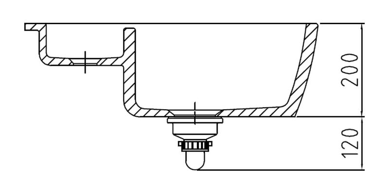 Das Füllen und Ablaufen der Spüle wird über einen runden Drehknebel auf der Oberseite der Spüle vorgenommen. Dieser Knebel, Excenterbetätigung genannt, verschließt oder öffnet den Ablauf der Spüle, je nachdem in welche Richtung er gedreht wird. Der Griff in das Spülwasser entfällt somit.