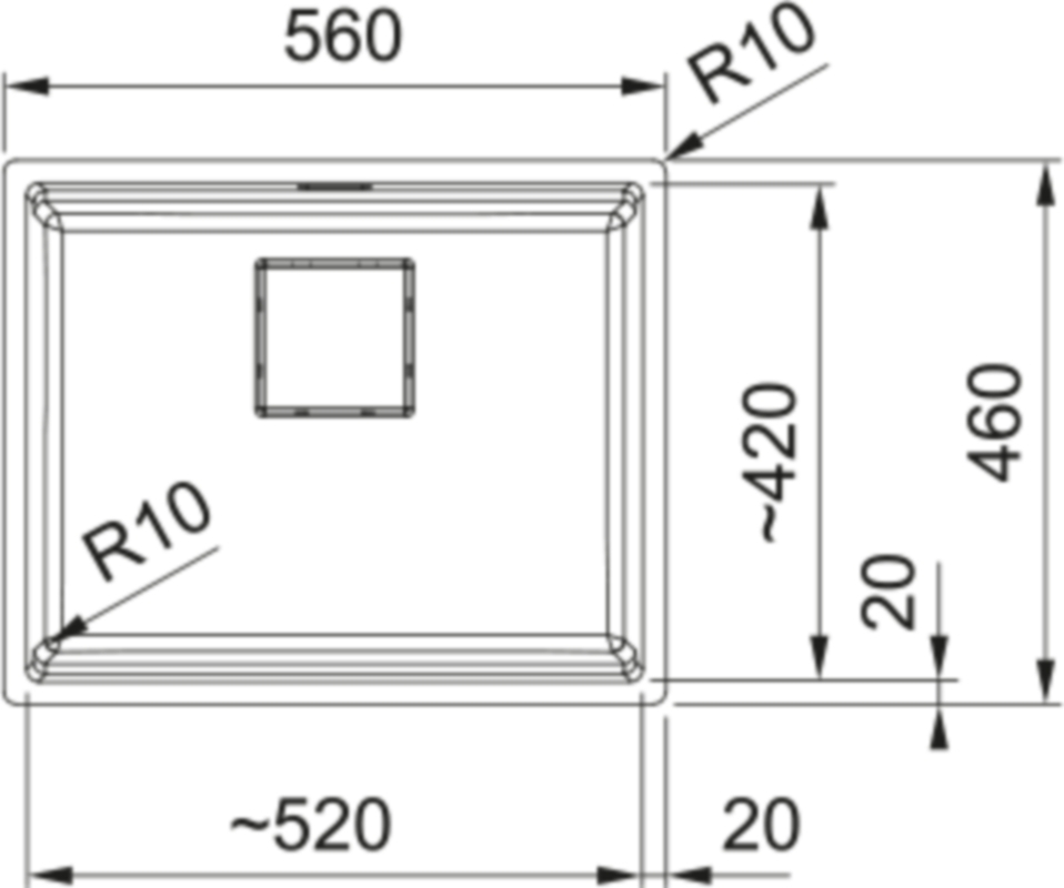 Spülenmaß: 560 x 460 mm