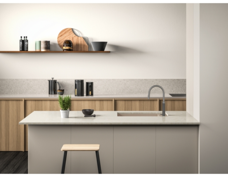 Ein außergewöhnlich robustes Material, das äußerst widerstandsfähig gegen Hitze, Dellen, Absplitterungen und Flecken ist. Franke hat als Pionier ein einzigartiges Material entwickelt, das mit einem subtilen Glanz besticht und sich dank seines hohen Quarzgehalts von fast 80 % warm anfühlt. Die Oberfläche ist fein strukturiert und gewährleistet hohe Hygienestandards.