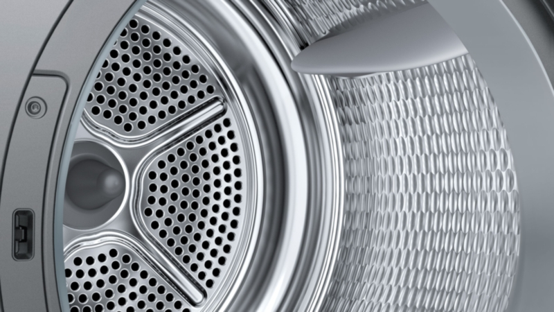 - Sensitive Drying System: große Edelstahltrommel, Mitnehmer im Softdesign