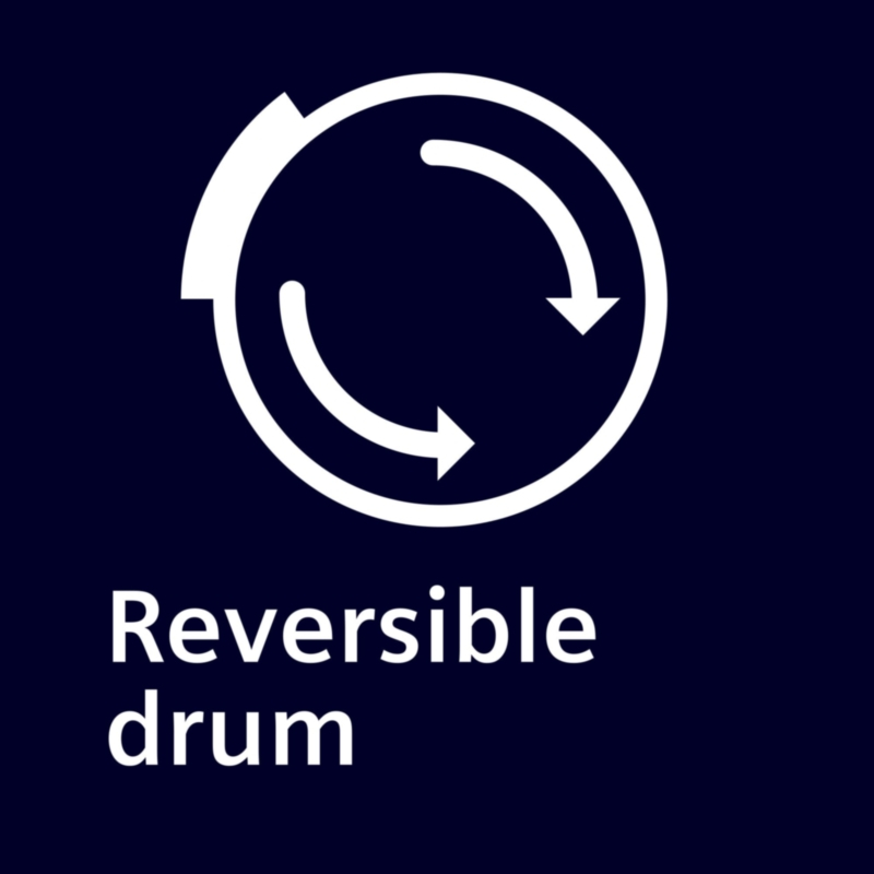 - Reversierende Trommel: verhindert durch regelmäßige Änderung der Drehrichtung, dass sich große Wäschestücke