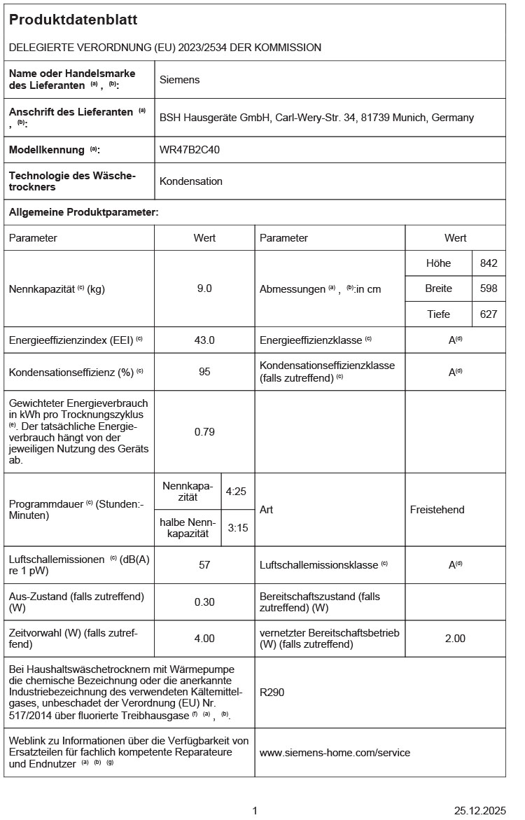 - Energieeffizienzklasse A: maximiere deine Energieeinsparung mit Siemens Wäschetrocknern.