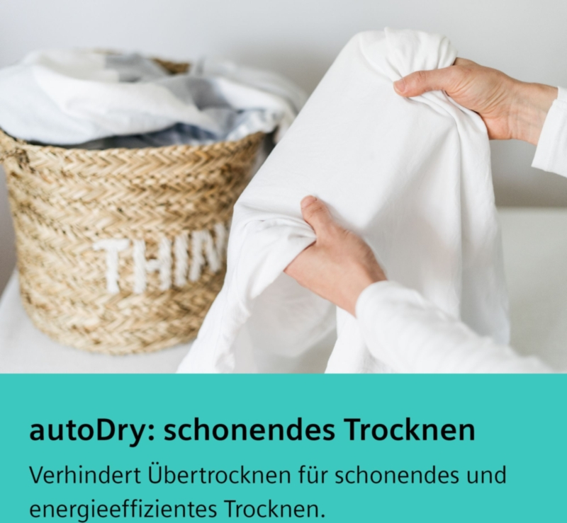 - AutoDry: feuchtegesteuerte Trocknungsprogramme