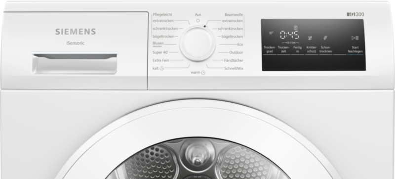 - AutoDry: feuchtegesteuerte Trocknungsprogramme