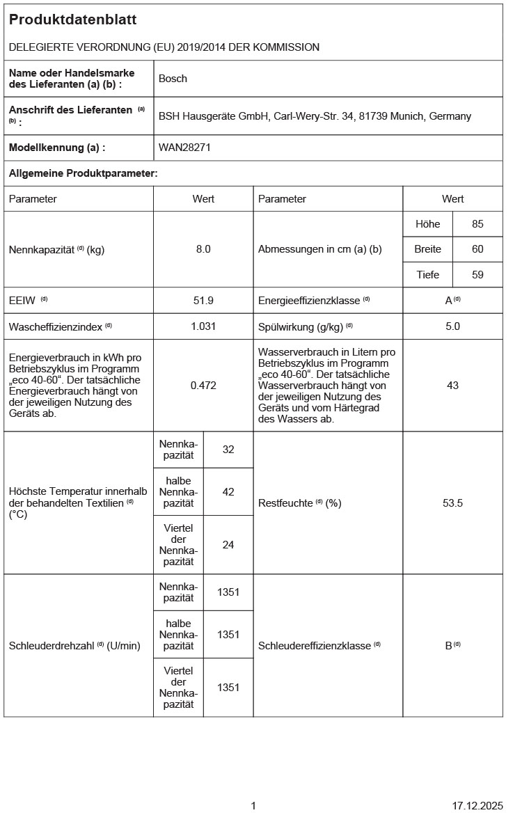 - Schleudereffizienzklasse: B