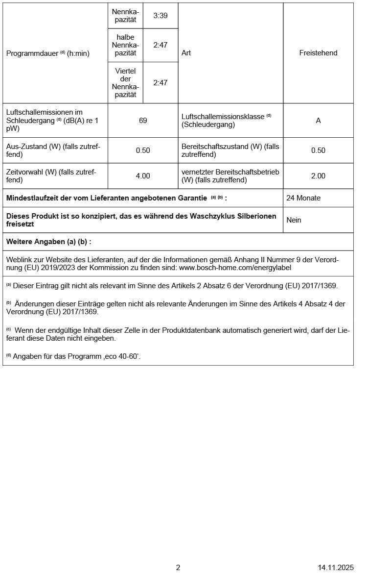 - Stromverbrauch² / Wasserverbrauch³: 49 kWh / 46 Liter