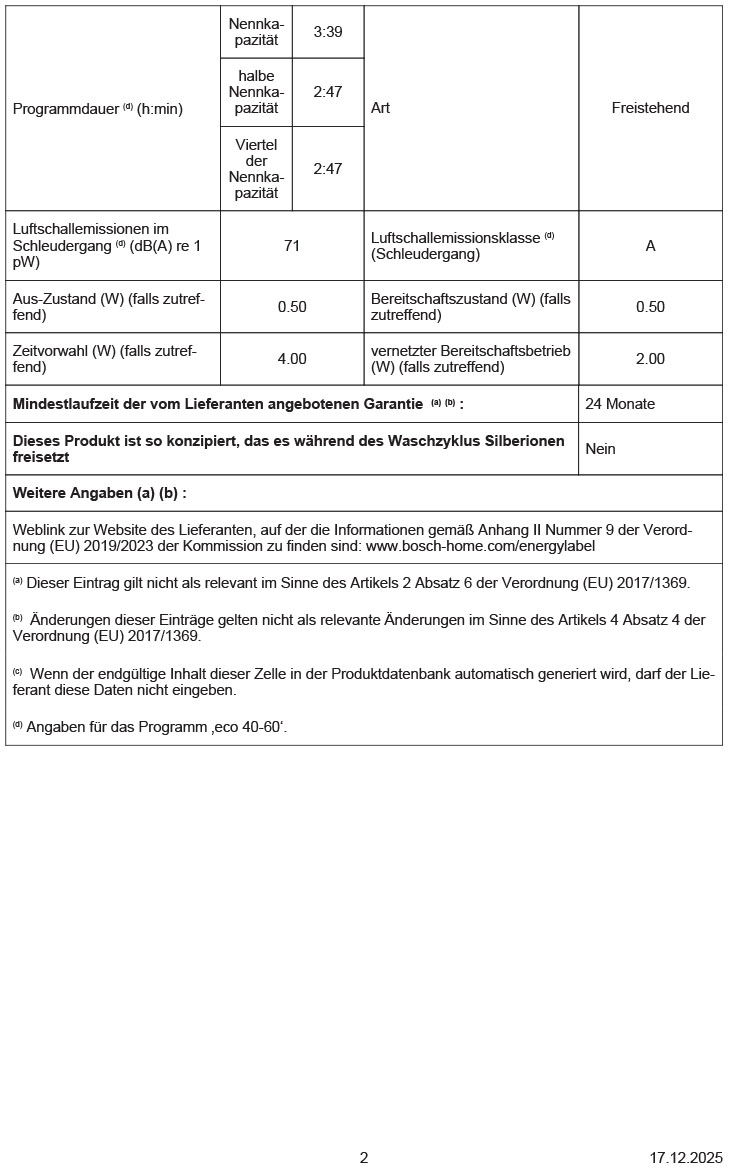 - Stromverbrauch² / Wasserverbrauch³: 49 kWh / 46 Liter