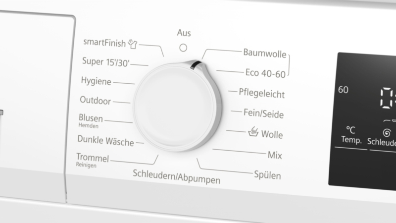 - Standardprogramme: Baumwolle, Pflegeleicht, Fein/Seide, Wolle-Handwäsche