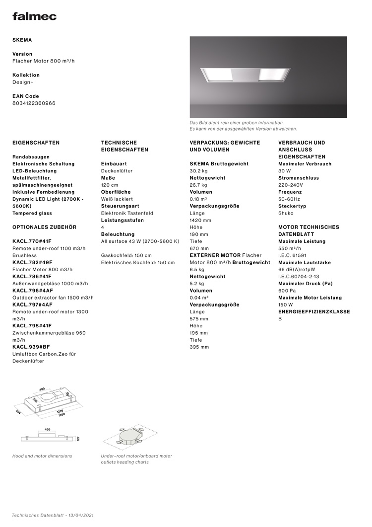 - für falmec-MotorenFalmec bietet eine breite Palette von Motoren an, je nach Notwendigkeit. Neben dem Aspekt der Effizienz, wird auch spezielles Augenmerk auf Lärmminderung gelegt, um so einen höheren Komfort in der Küche zu erreichen.(müssen separat bestellt werden, siehe Sonderzubehör)