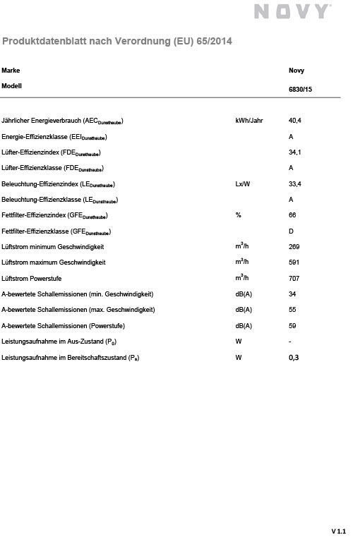 - Austausch gegen einen gleichwertigen oder neuen Artikel Novy Pure'line 6830(ggf. auch ein Nachfolgemodell)