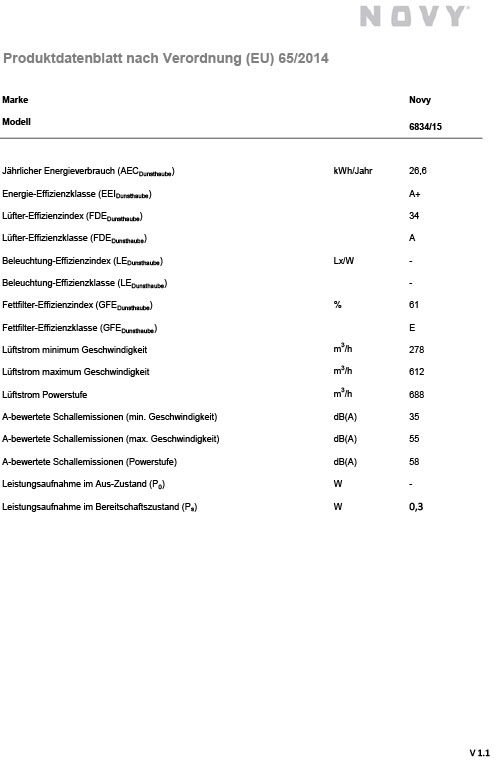 - Austausch gegen einen gleichwertigen oder neuen Artikel Novy Pure'line 6834(ggf. auch ein Nachfolgemodell)