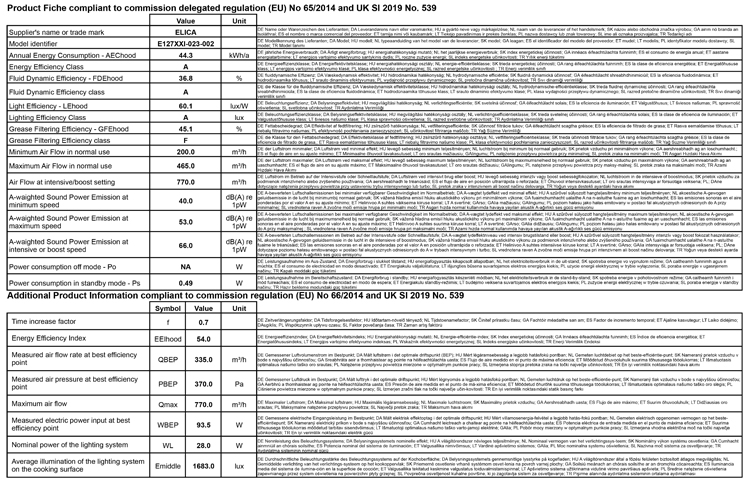 Technische Informationen der Elica LULLABY WH WOODA120 Decken Esse