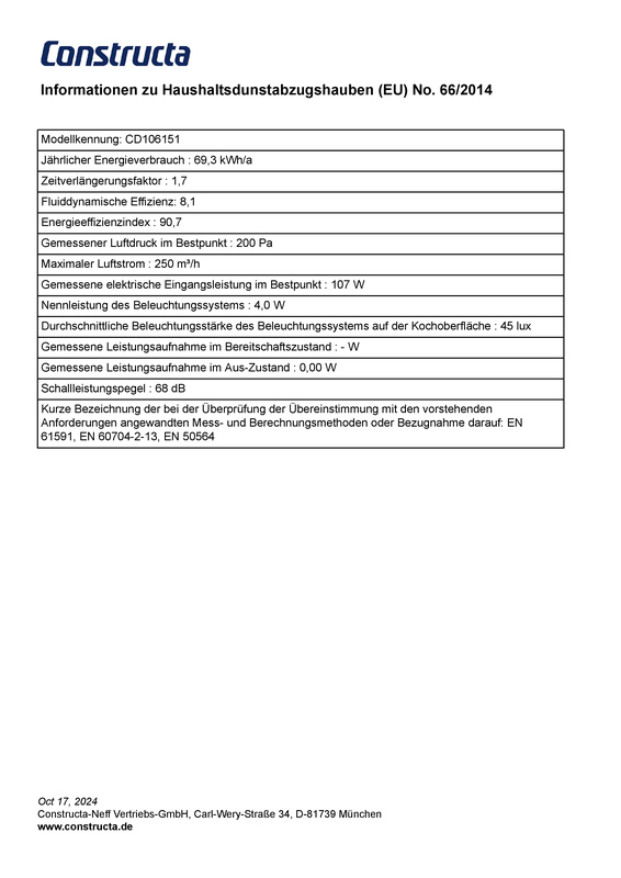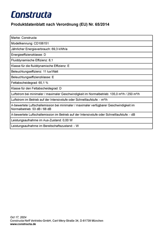 Artikelbezeichnung: Constructa-Neff Vertriebs-GmbH