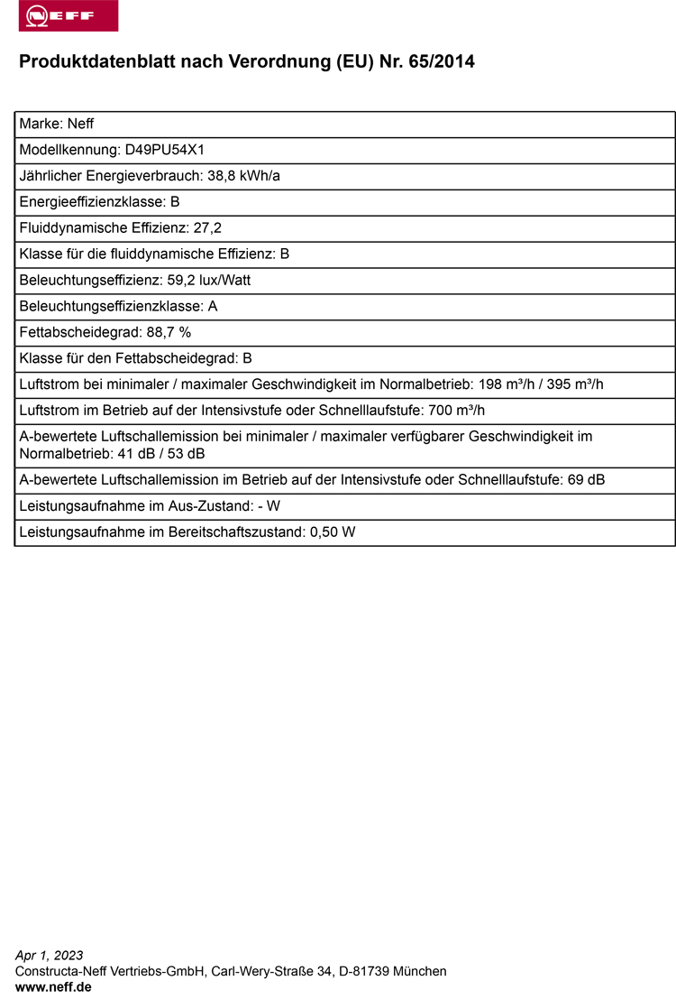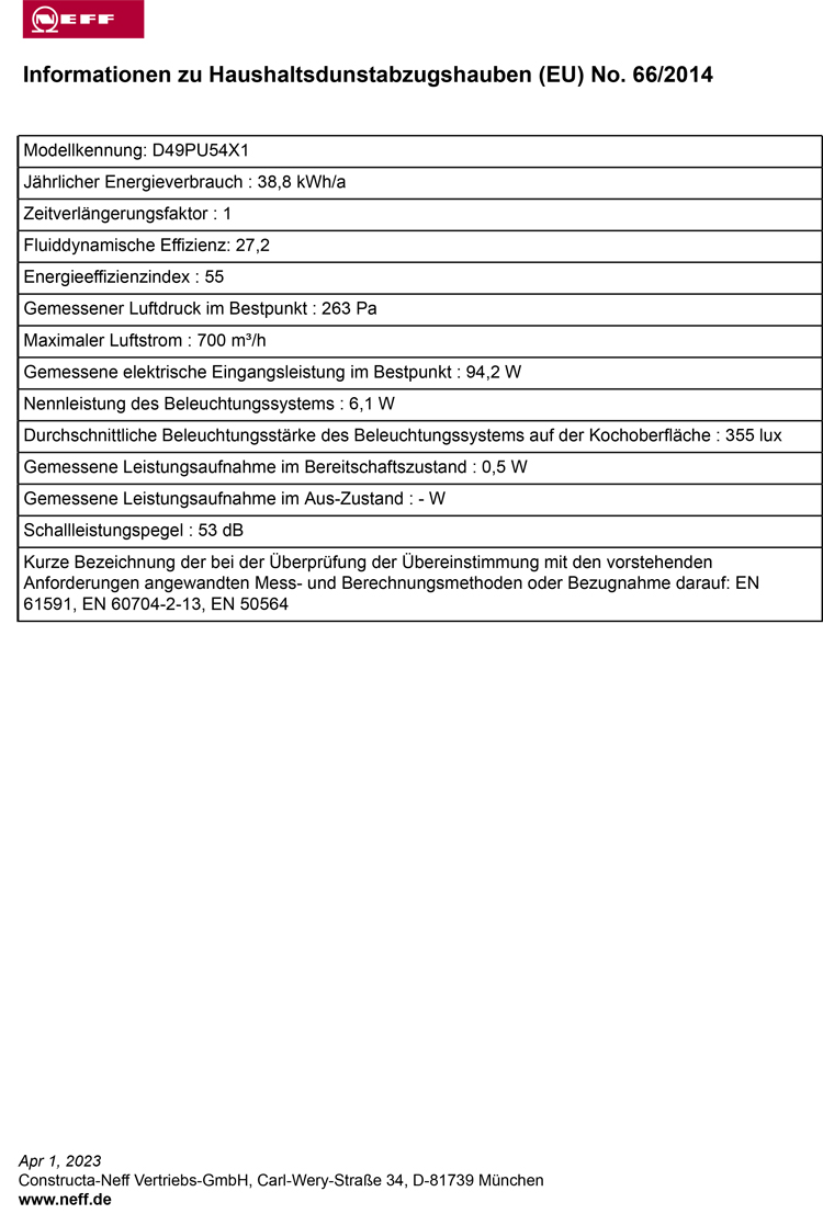 - Geräuschwerte Umluft: Max. Normalstufe: 60 dB(A) re 1 pW, Intensivstufe: 71 dB(A) re 1 pW