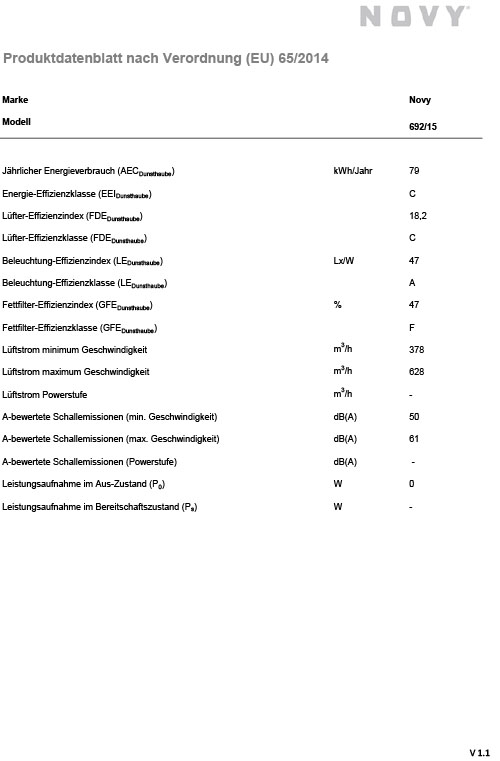 - Austausch gegen einen gleichwertigen oder neuen Artikel Novy Move'line Flachschirmhaube 692, Edelstahl Flachschirmhaube (ggf. auch ein Nachfolgemodell)