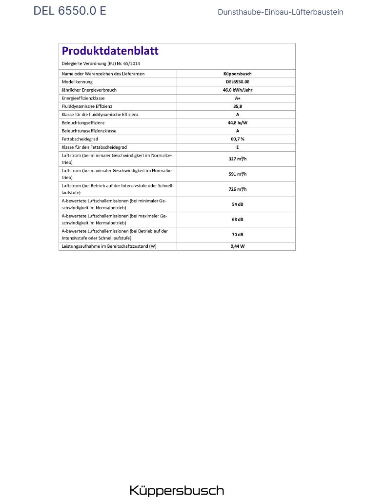 • Austausch gegen einen gleichwertigen oder neuen Artikel Küppersbusch DEL 6550.0 (ggf. auch ein Nachfolgemodell).