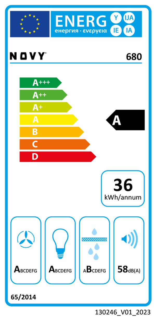 - Beleuchtung-Effizienzklasse (LEDunsthaube) A