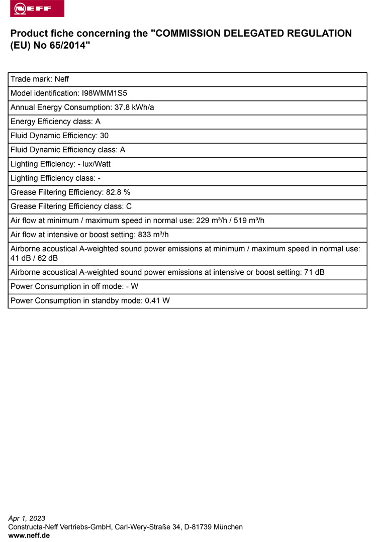 - Lüfterleistung bei Abluftbetrieb nach EN 61591: max. Normalstufe 519 m³/h, Intensivstufe 833 m³/h
