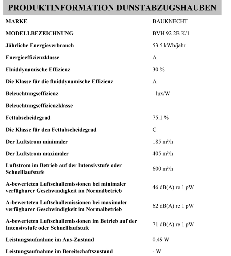 - Betriebsgeräusch im Abluftbetrieb: min. 46 – max. 71 dB/A