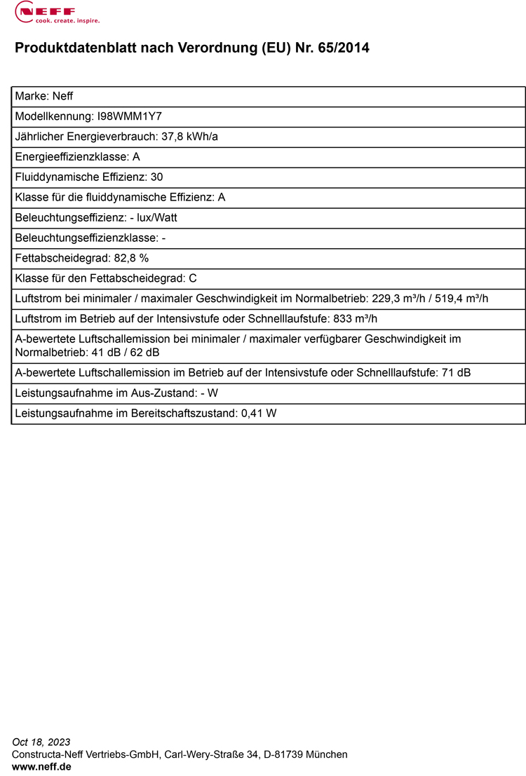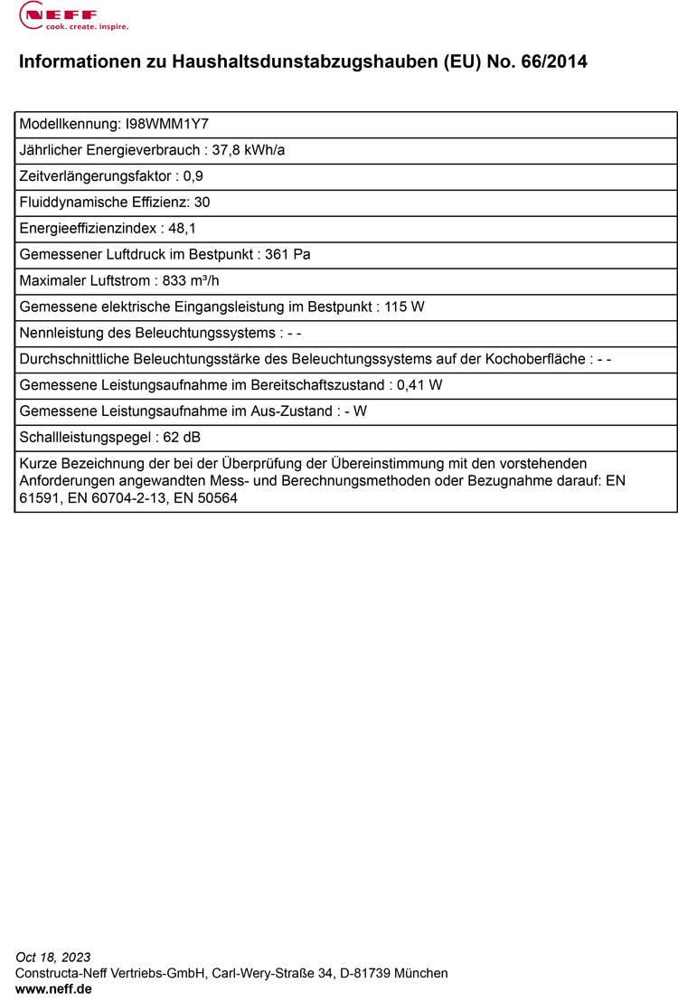 - Umluftstufe: Max. Normalbetrieb: 456 m³/h, Intensivstufe: 596 m³/h, Geräuschwerte Umluft: Max. Normalstufe: 66 dB(A) re 1 pW, Intensivstufe: 71 dB(A) re 1 pW