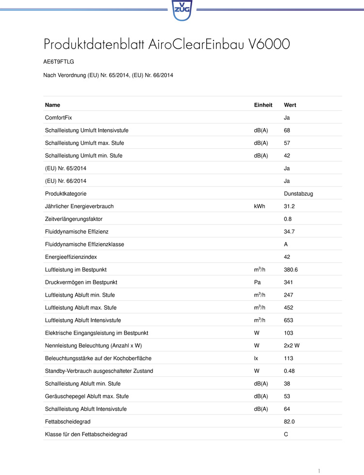 - Schallleistung Abluft min. Stufe: 38 dB(A)