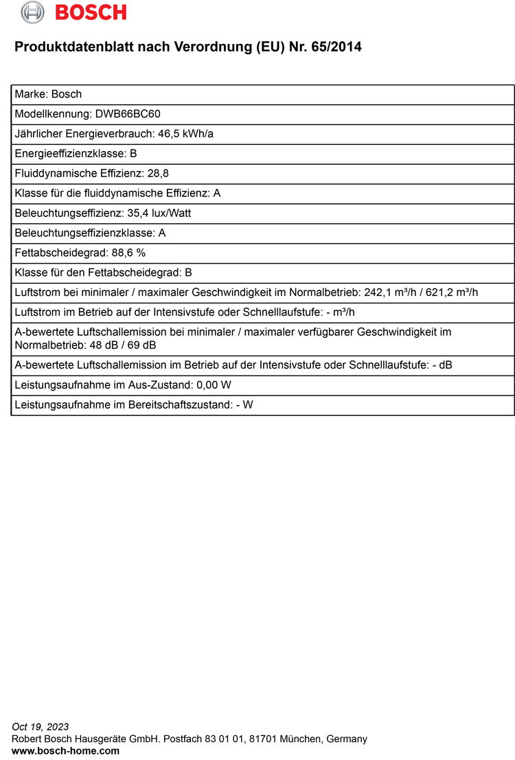 - Geräuschwerte nach EN 60704-2-13 max. Normalstufe Abluftbetrieb: Geräusch, höchste Normal-Stufe: 69 dB dB(A) re 1 pW