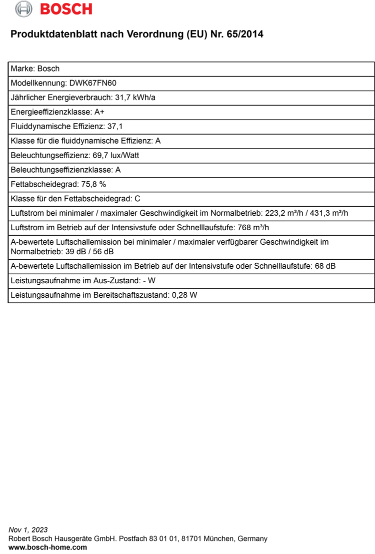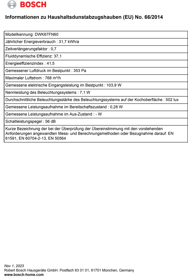- Leistungsstufe 3: Lüfterleistung:427 m3/h; Geräuschwert: 64 dB(A) re1pW
